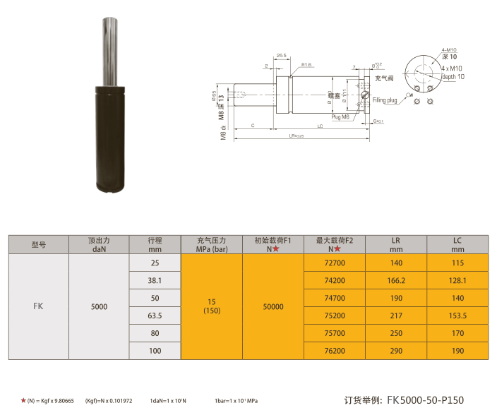 产品说明:FK5000氮气弹簧,模具氮气弹簧,短型氮气弹簧
