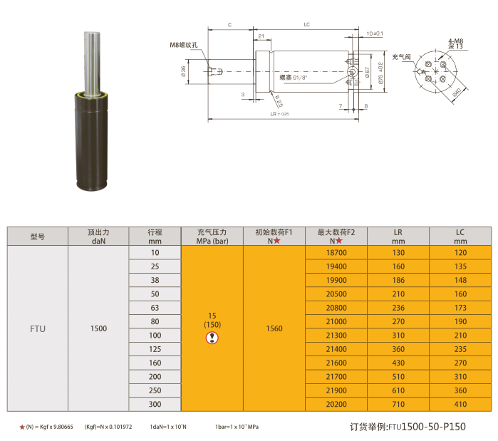 产品说明:FTU1500氮气弹簧,模具氮气弹簧,ISO氮气弹簧