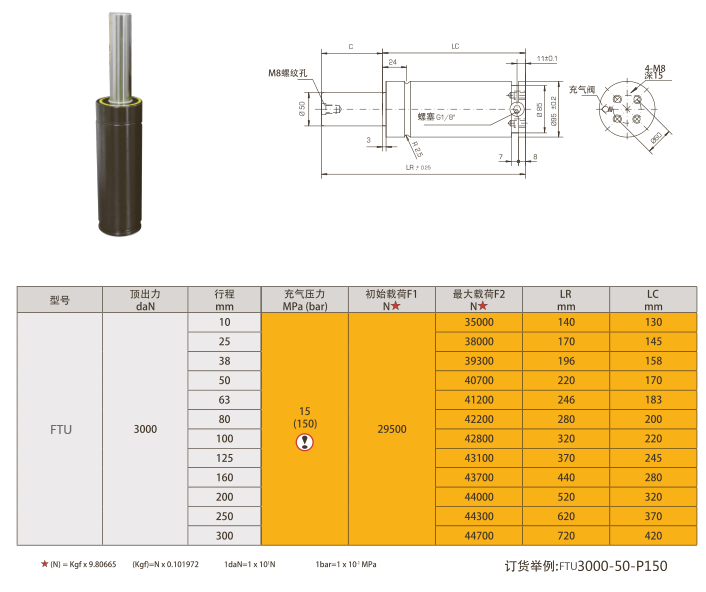 产品说明:FTU3000氮气弹簧,模具氮气弹簧,ISO氮气弹簧