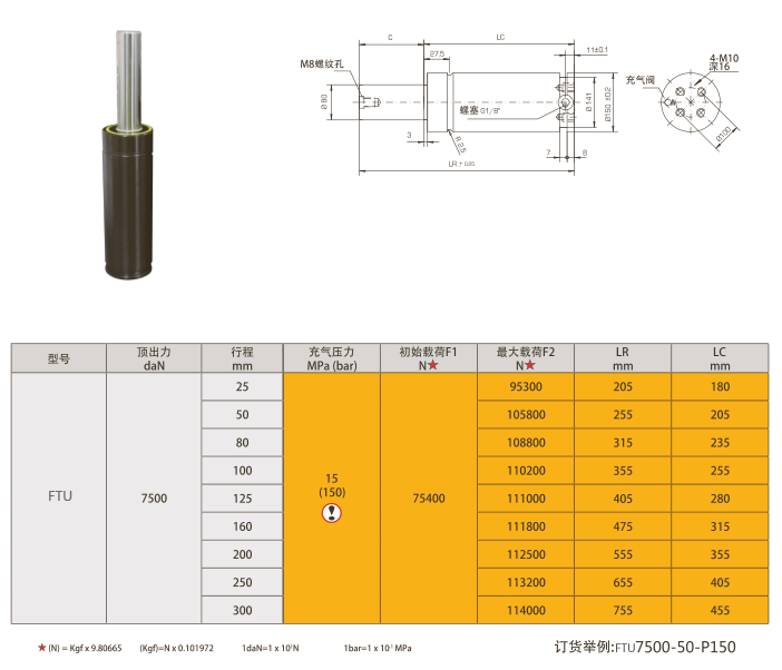 产品说明:FTU7500氮气弹簧,模具氮气弹簧,ISO氮气弹簧