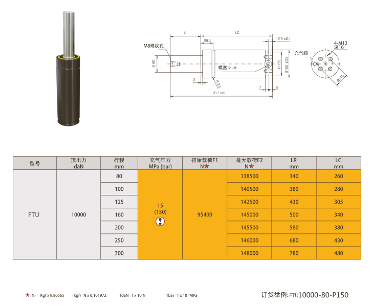 产品说明:FTU10000氮气弹簧,模具氮气弹簧,ISO氮气弹簧