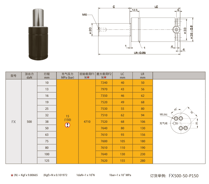 产品说明:FX500氮气弹簧,模具氮气弹簧,极强载荷型氮气弹簧