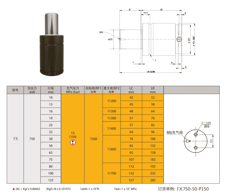产品说明:FX750氮气弹簧,模具氮气弹簧,极强载荷型氮气弹簧