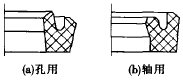 (4)Y形组合密封是由Y 形密封圈和唇内的。形圈组合而成的一种单向密封(图7),其密封原理与一般的Y 形密封圈相同。o 形圈由形变能力强的合成橡胶制造,而Y 形密封件则采用刚性较好的夹织物橡胶制造,在压力作用下同样能径向膨胀。起自密封作用。这种结构既保持了优良的密封性能,又使摩擦磨损较小,还同时避免了单一Y 形密封圈工作时被挤入间隙而破坏的可能。
