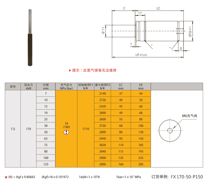 产品说明:FX170氮气弹簧,模具氮气弹簧,极强载荷型氮气弹簧