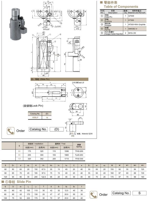 产品说明:我公司专业生产氮气弹簧,汽车模具标准件,斜楔,导板,导套,导柱,耐磨板,凸凹模,自润滑导板,挡料销,起重棒,冲孔凸模,限位器,垫片等产品。